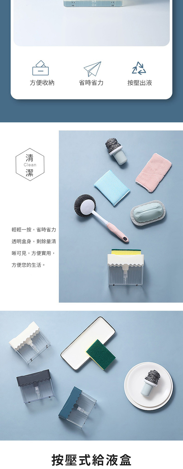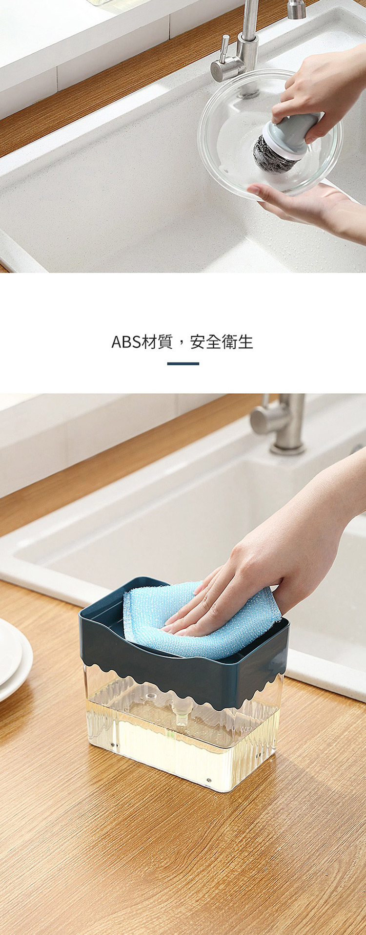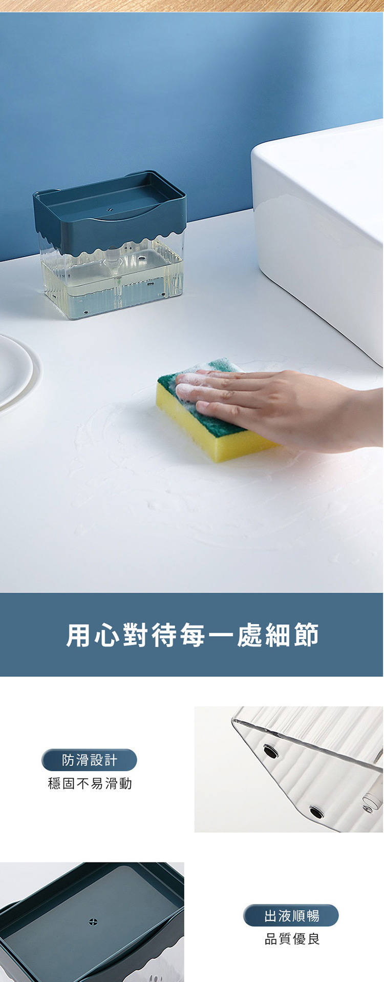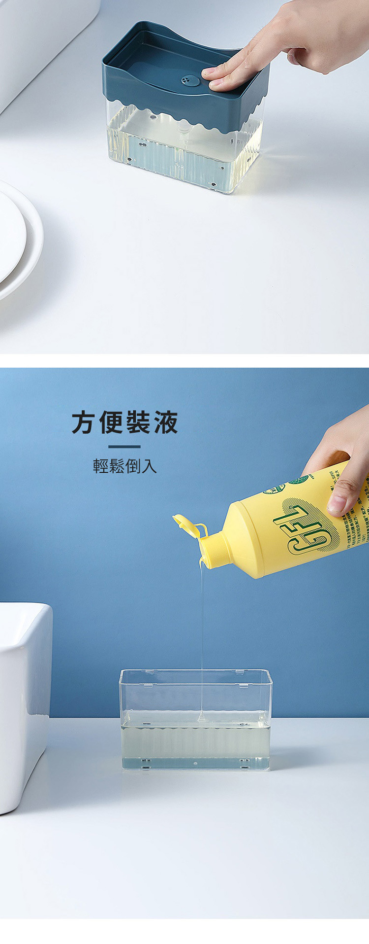 單手直壓洗碗精盒 洗碗精按壓瓶 洗潔液按壓器(含海綿菜瓜布) 單手操作
