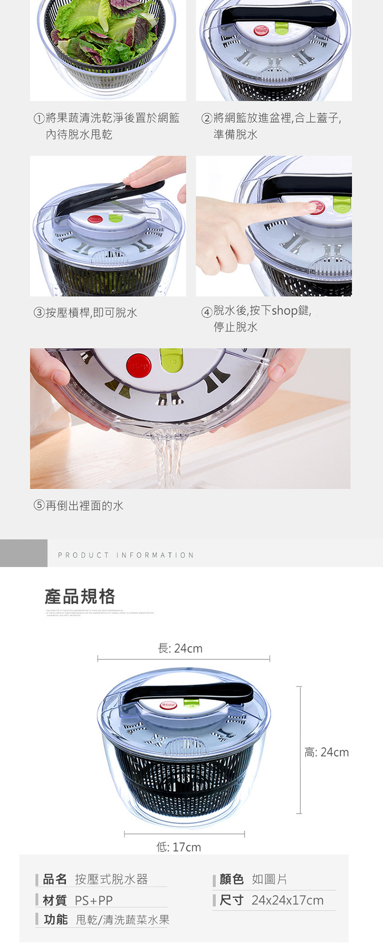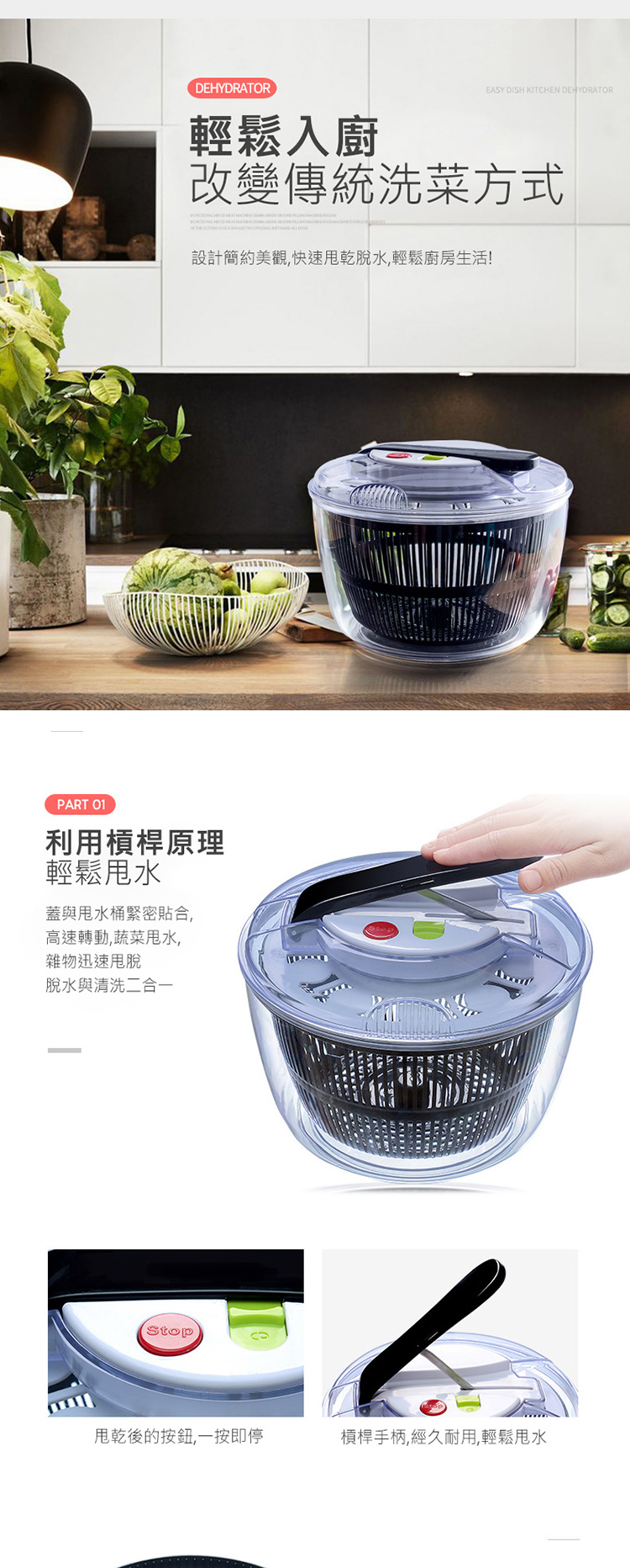 ◆槓桿按壓設計,只需單手操作,輕鬆甩出水分