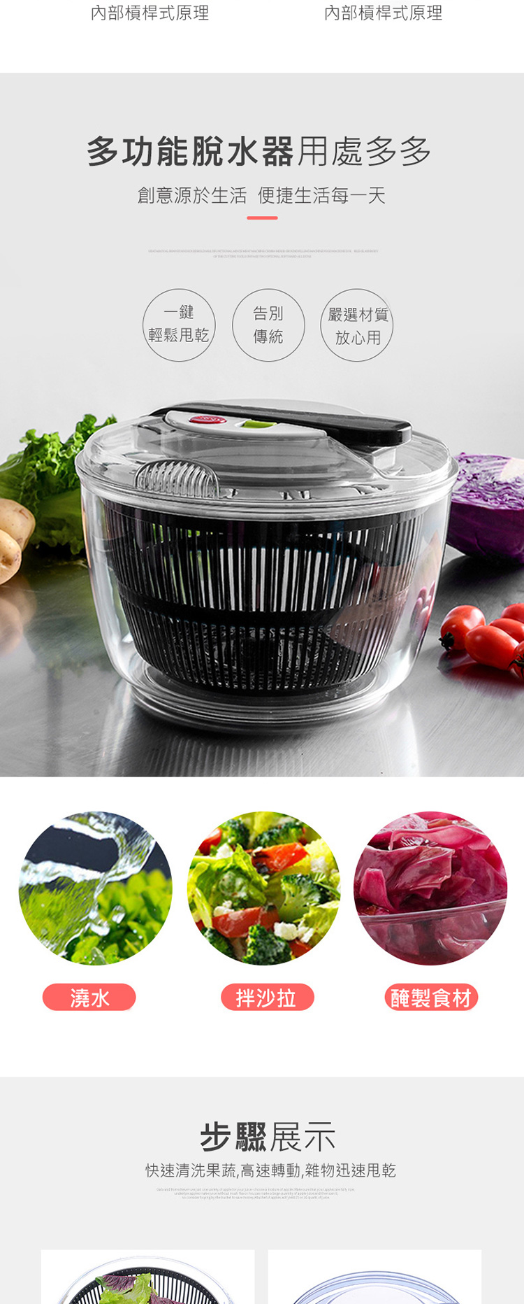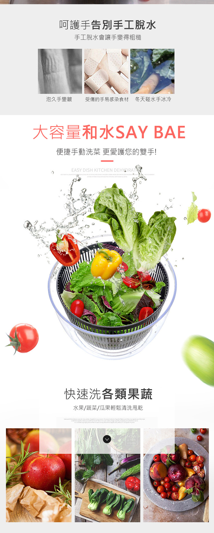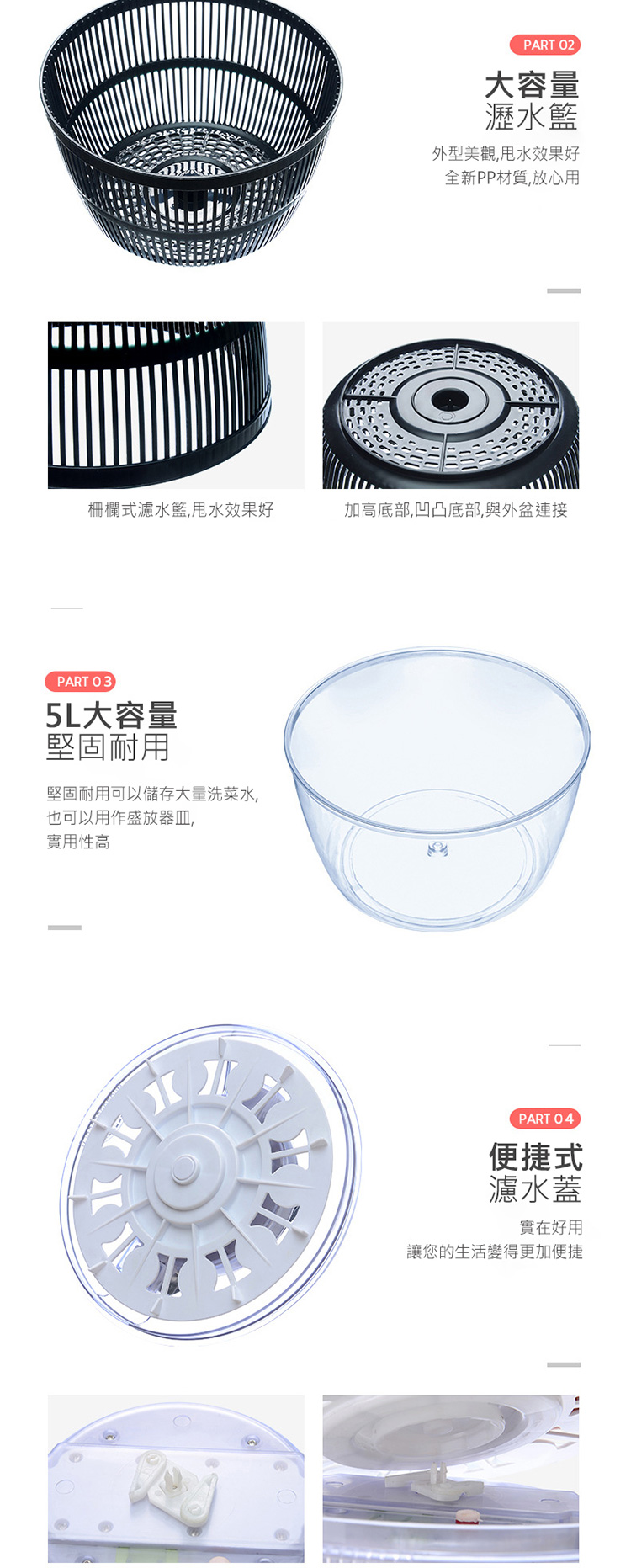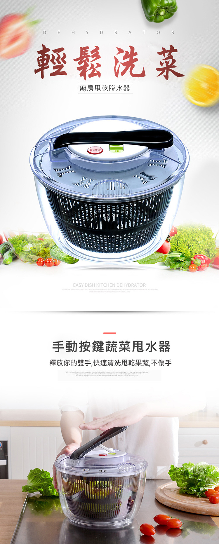 ◆5L大容量,可清洗/甩乾蔬果,保持新鮮脆度