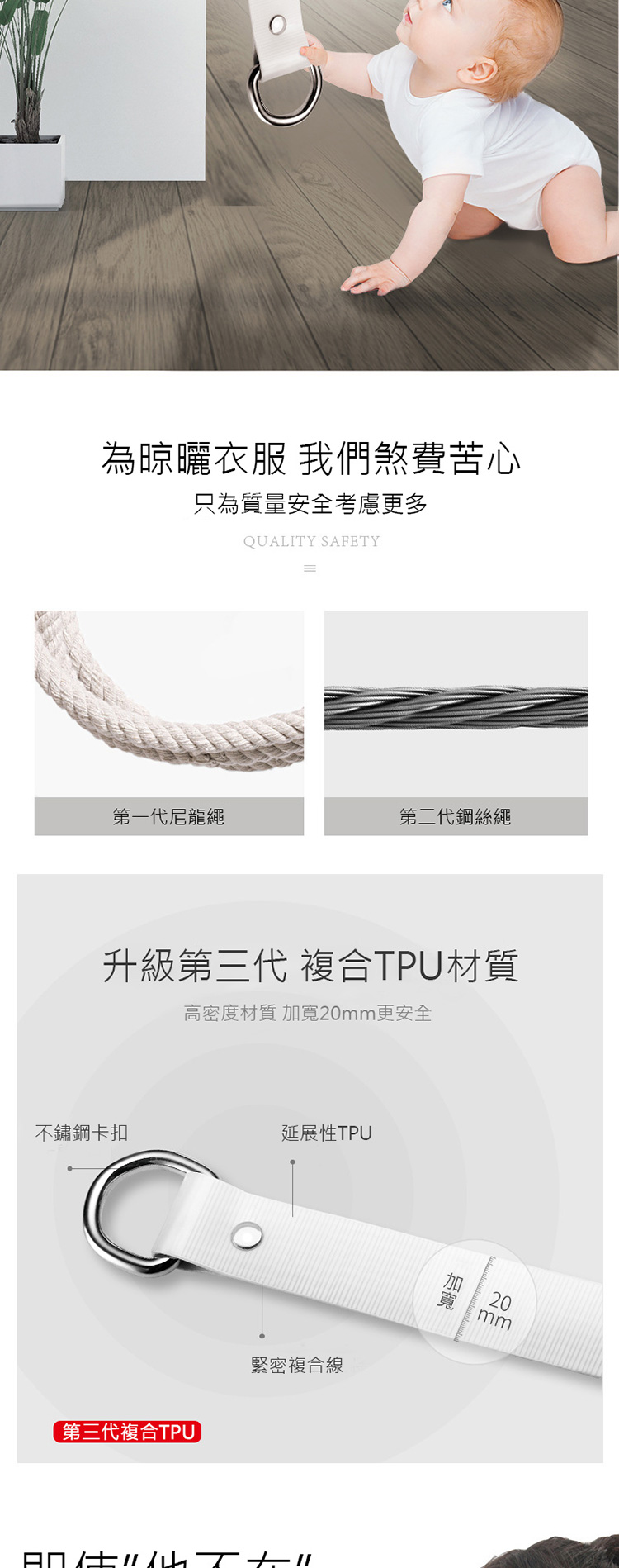 TPU晾衣繩柔韌加寬,不傷手更牢固