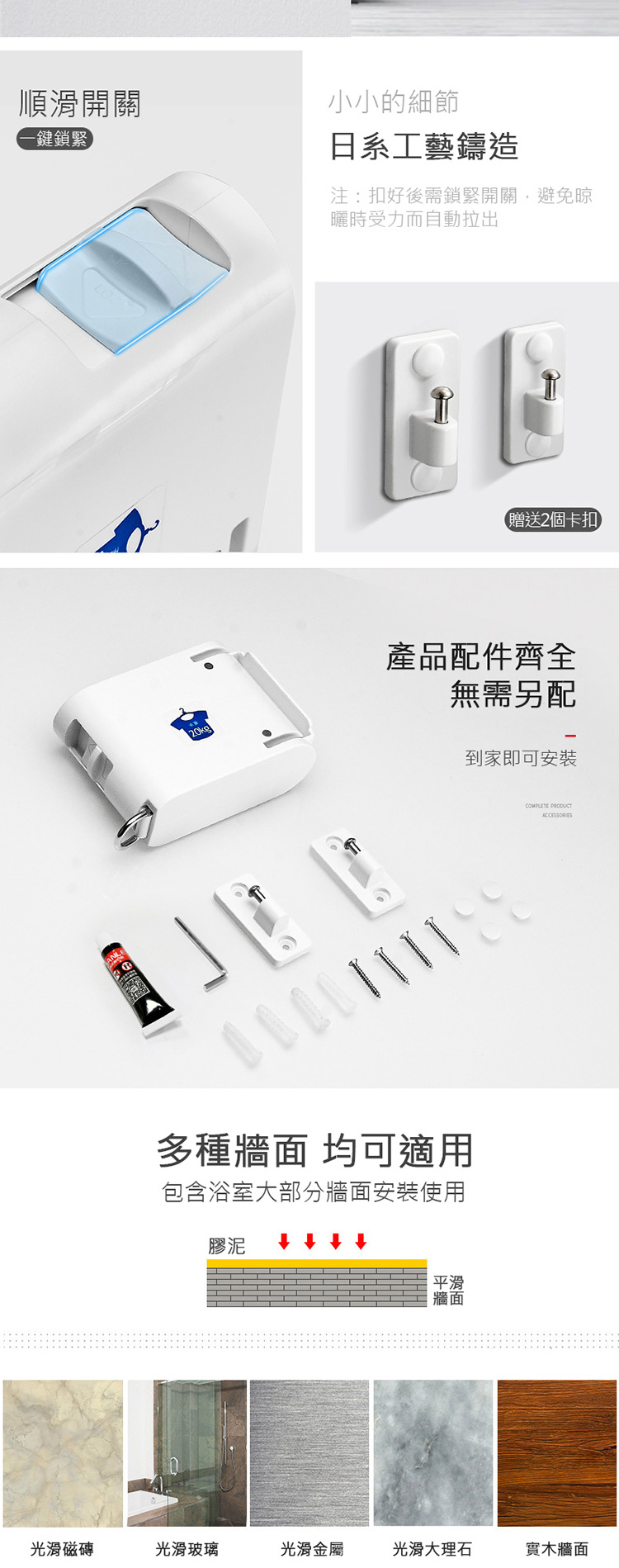 ※本產品適用於光滑平整的硬質表面(玻璃/磁磚/大理石/不鏽鋼面板/壓克力面板等;壁紙、絨布、或油漆易剝落/脫皮/掉粉的牆面"不適用",請注意。)