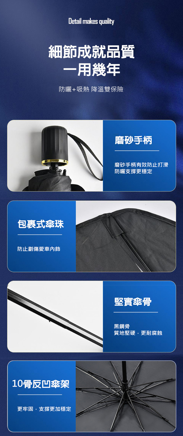 曲線凹面傘面,鈦銀膠塗層有效阻擋紫外線,保護汽車內飾