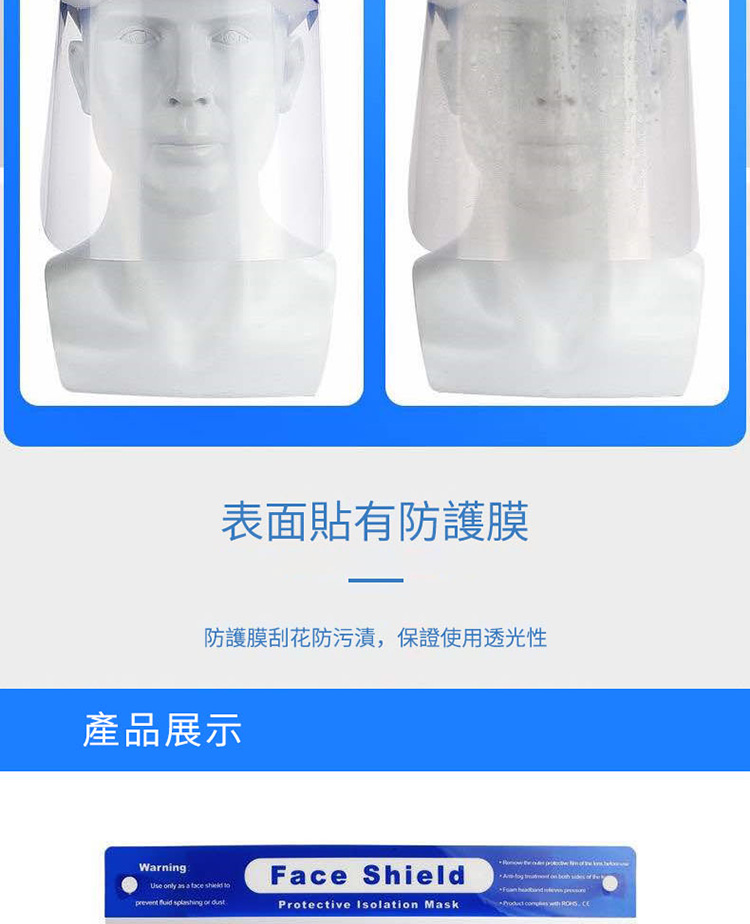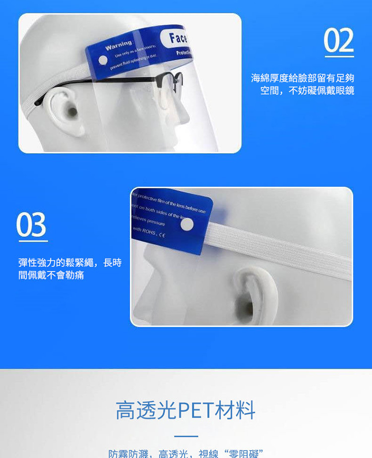 超大面積覆蓋全臉,防護完整,有效防止口眼鼻接觸