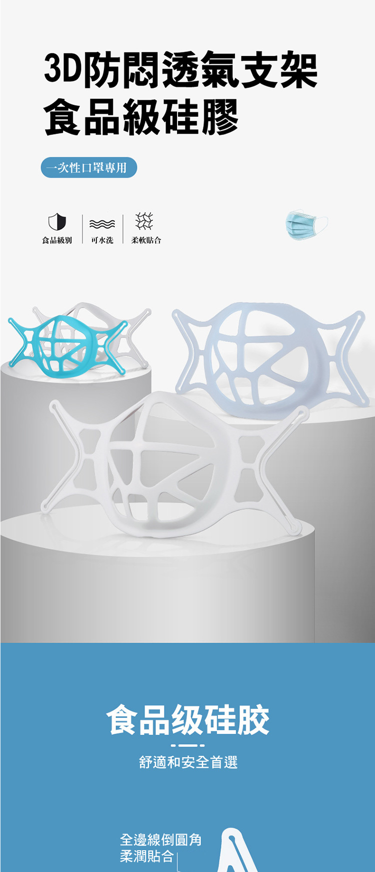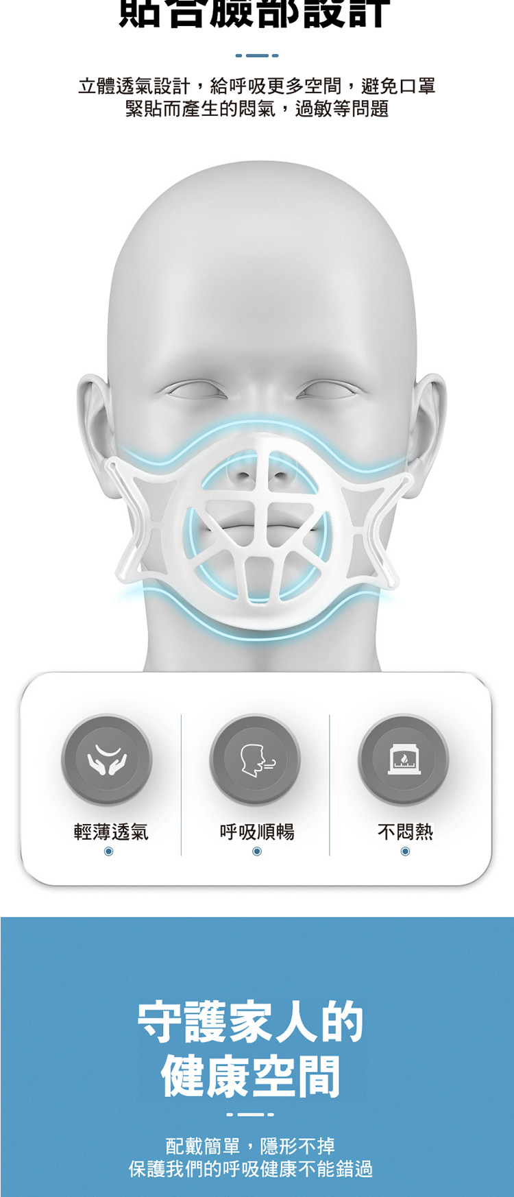 這款口罩支架結合了以下幾個特性,讓您輕鬆在戴口罩時更舒適