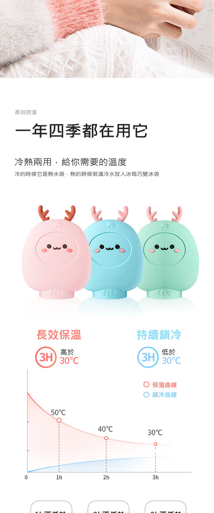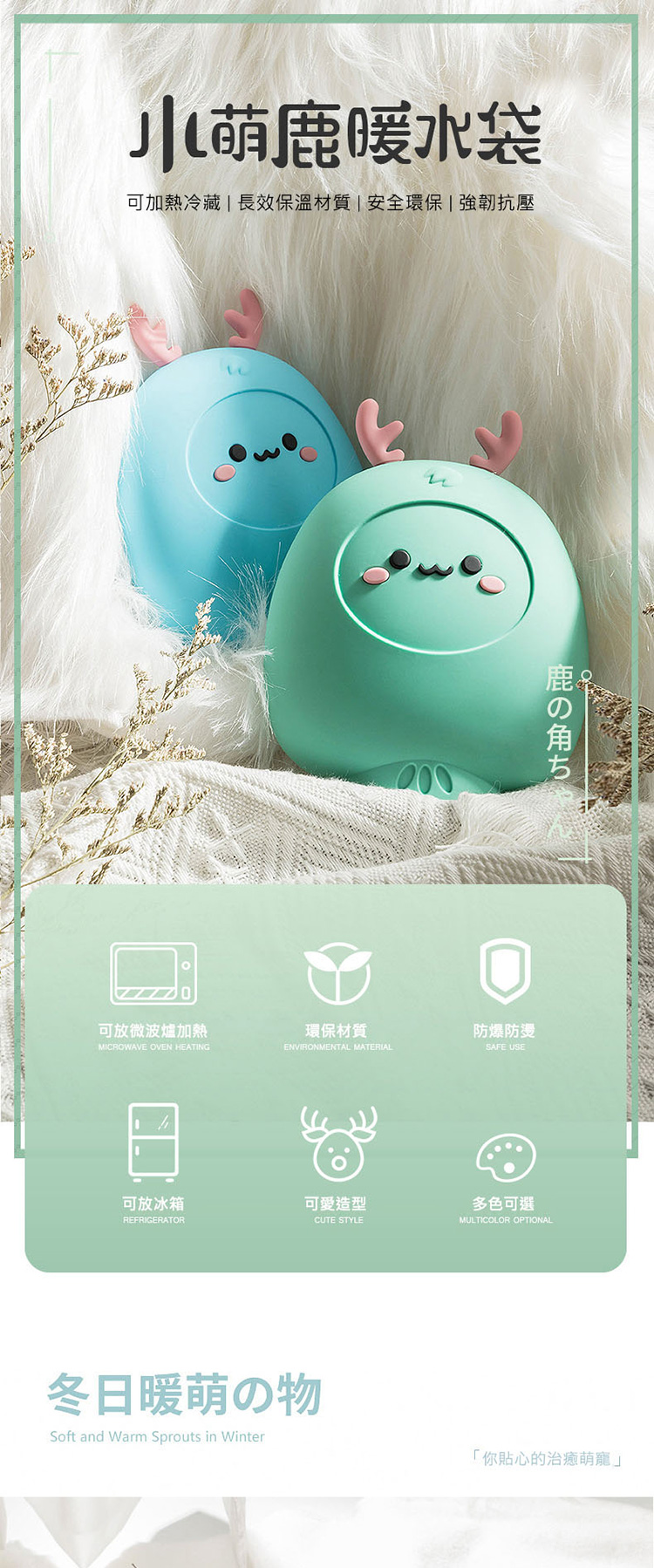 可愛小萌鹿矽膠熱水袋 萌物小鹿暖手寶 矽膠注水暖水袋 隨身小鹿灌水手袋 保溫袋 冷/熱敷袋 暖宮熱水袋 注水暖手寶 注水暖寶寶 冷敷袋 學生暖手寶 冷暖兩用/可微波加熱/一體成型