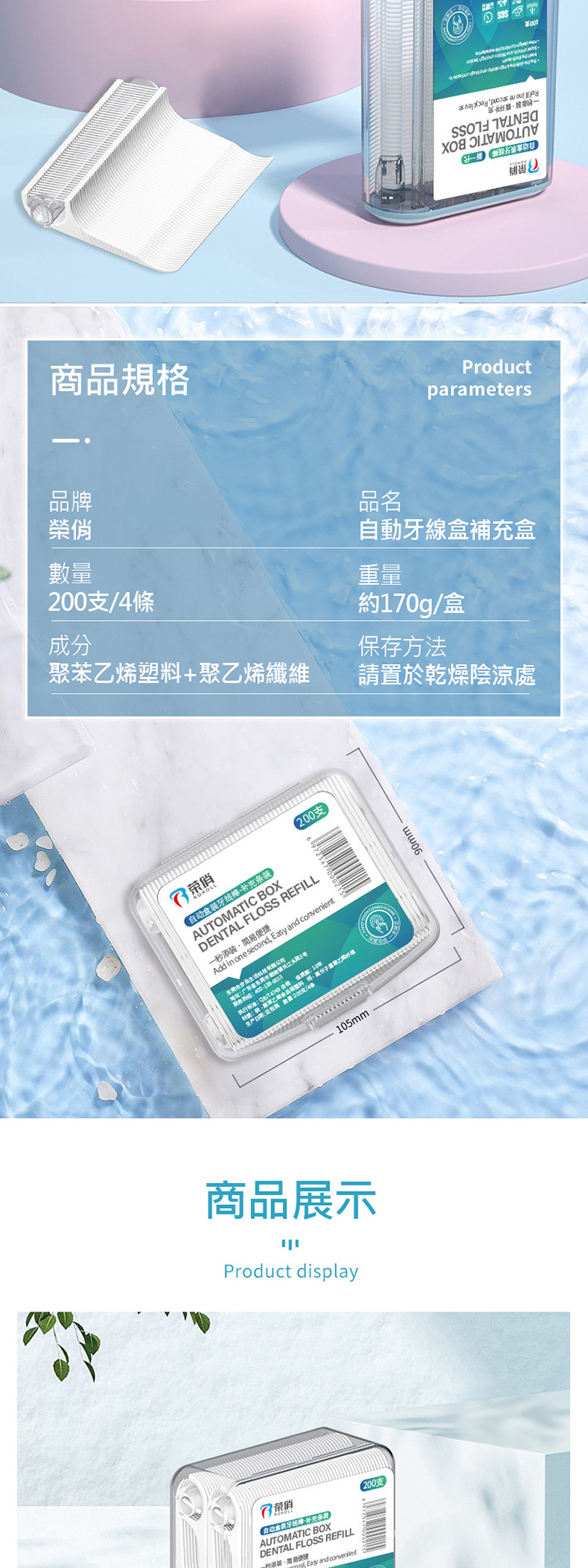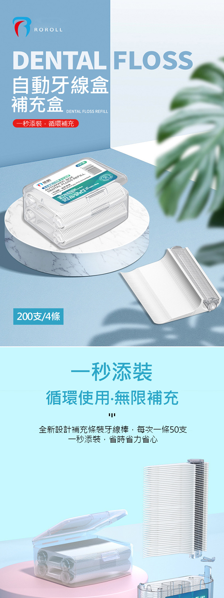 ◆全新設計補充條裝牙線棒,整齊排列不散亂,一秒添裝,循環補充