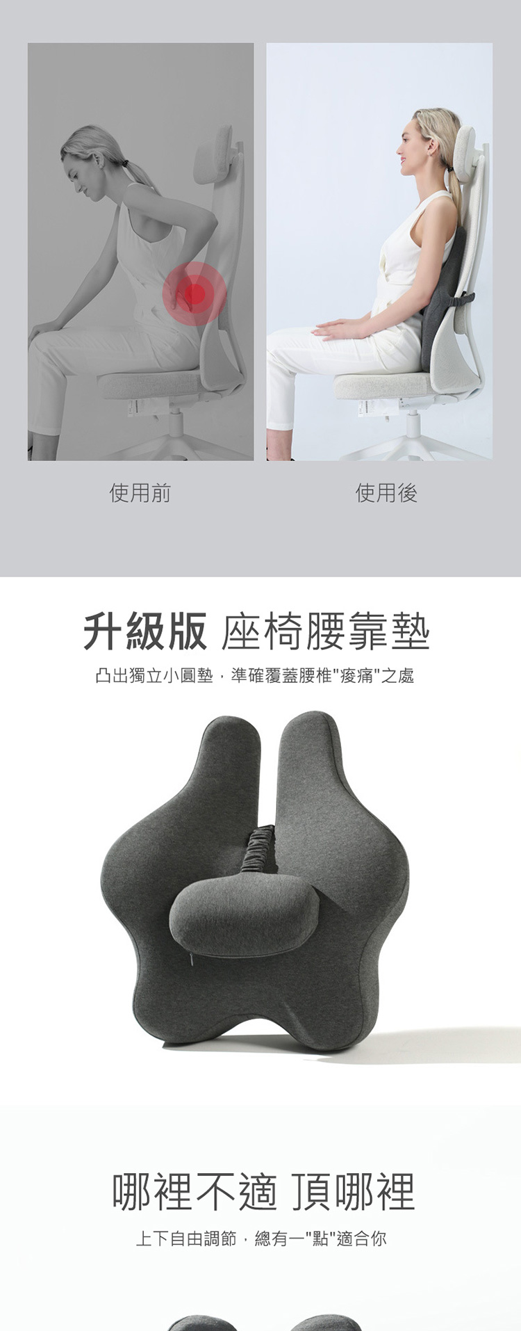 可調節支撐點,準確覆蓋腰椎"痠痛"之處