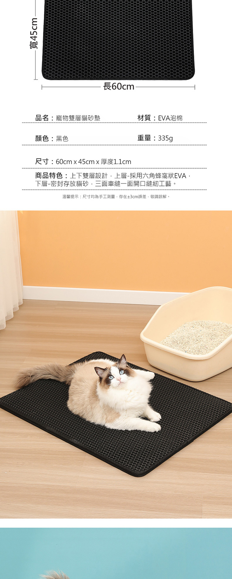 雙層貓砂墊45*60cm 落砂墊 EVA貓砂墊 貓沙墊 集中貓砂 貓踏墊 寵物墊 貓砂盆墊子 貓咪蹭腳墊 腳踏墊 門墊 地墊 防水止滑墊 可水洗 解決落砂/蜂巢式孔洞/EVA無毒材質