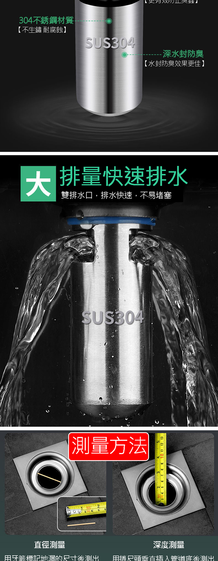 使用小叮嚀~選擇商品測量排水孔深度時,建議要預留2-3cm下水道排水空間,地漏芯不宜頂到底。