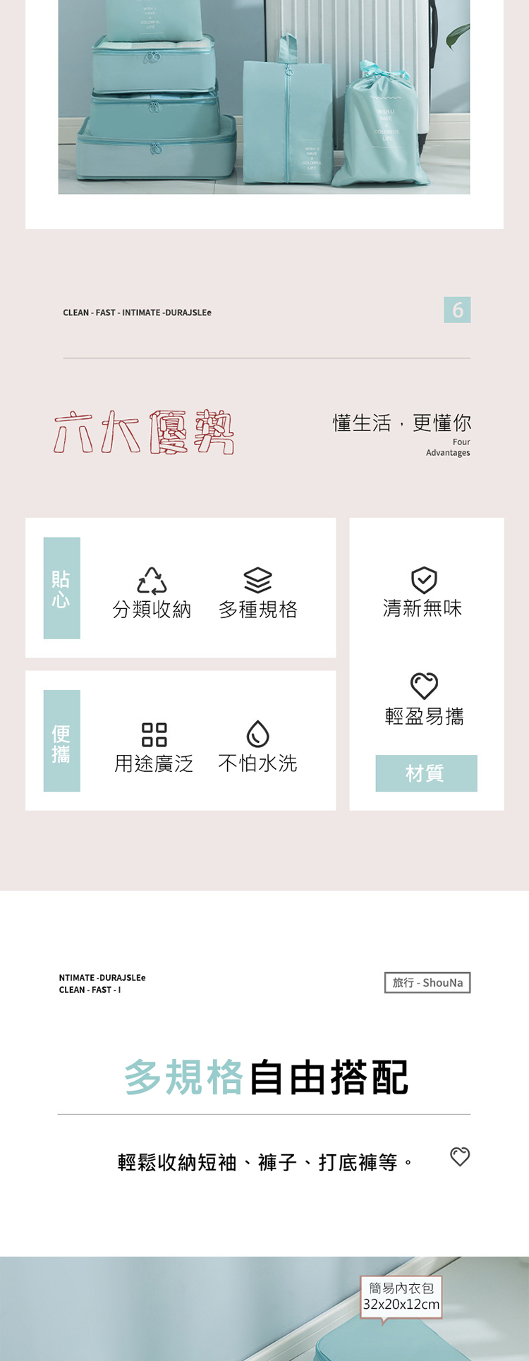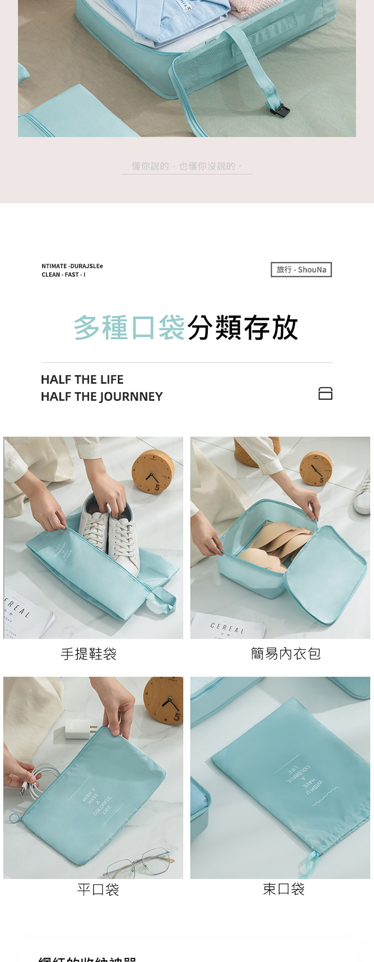 旅行收納組 防水旅行收納袋 旅遊收納 旅行箱/登機箱/收納盒/旅行袋/收納包/行李箱 (七件/組)