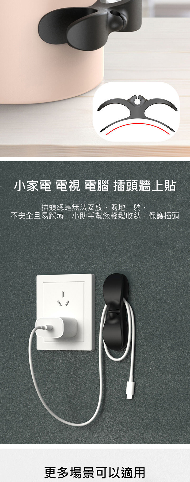 常規插頭皆可收納,適用於家庭用的99%插頭,保護電源線,減少折彎,避免接觸不良