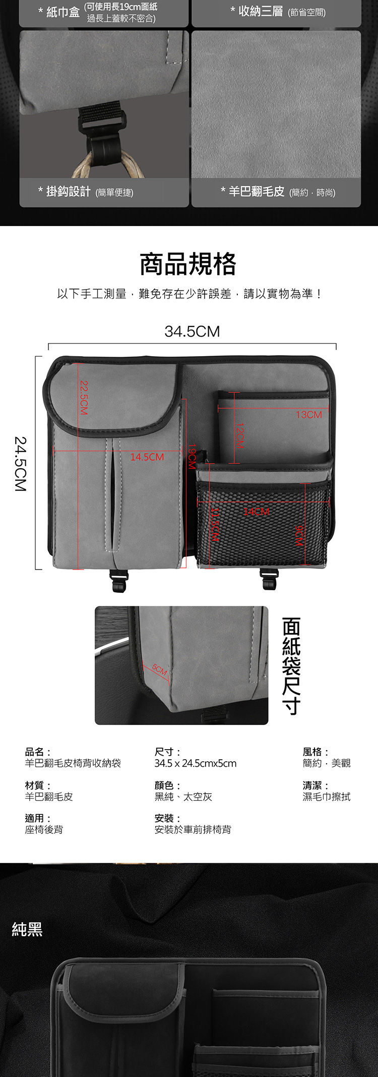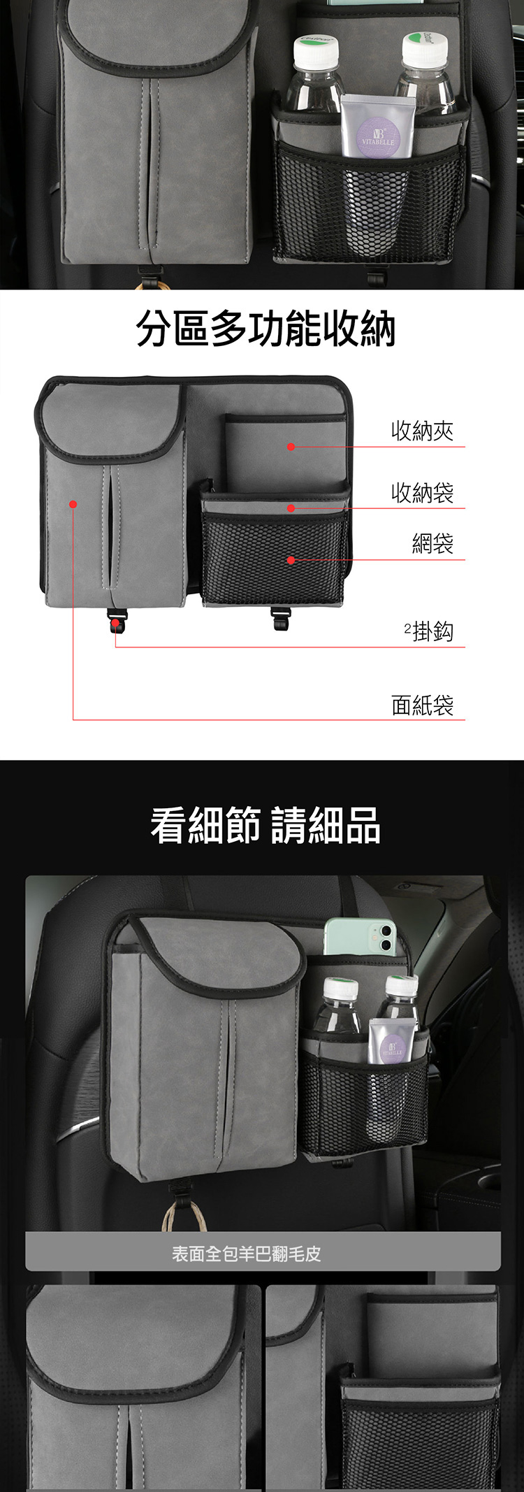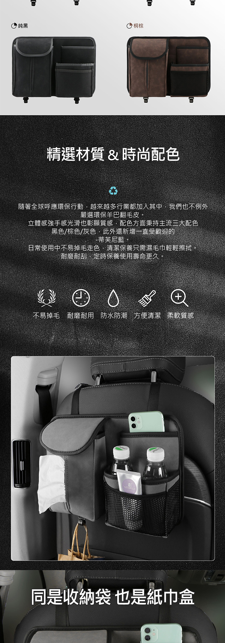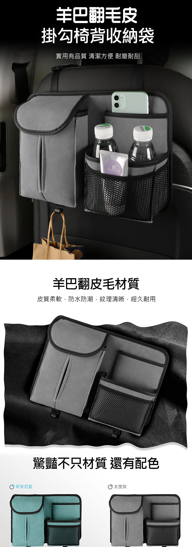 羊巴皮汽車椅背收納袋 羊巴翻毛皮置物掛袋 車載椅背置物袋帶掛鉤 帶掛勾椅背收納袋 車用座椅掛袋 帶掛鉤 車用掛袋 抽紙巾盒 車用紙巾盒 面紙盒