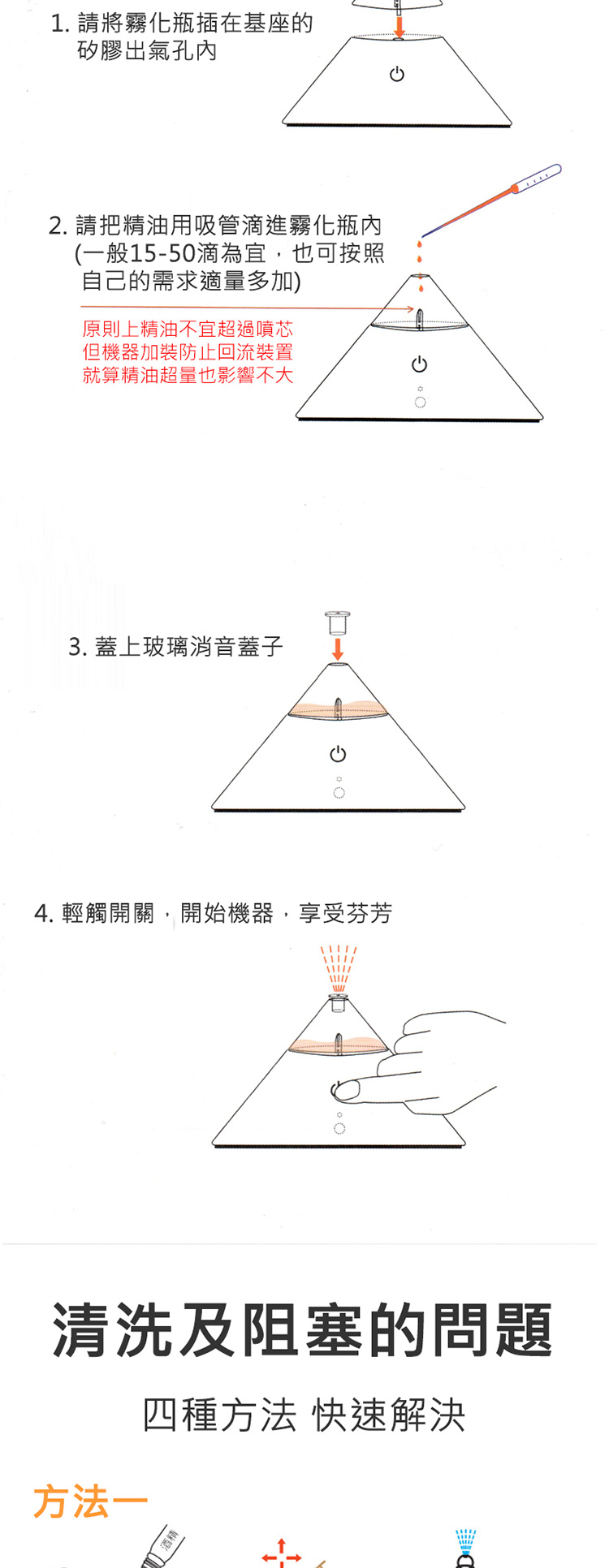 4.本機器使用天然精油,請不要使用來路不明的精油