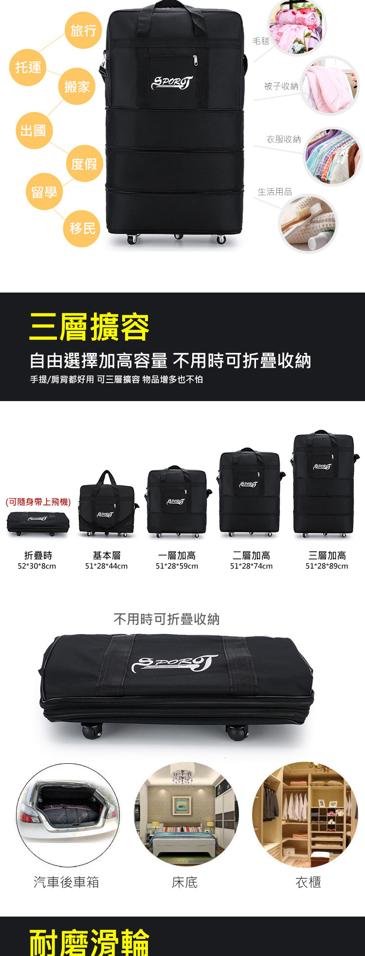 牛津旅行袋 旅行包 三層擴容 搬家/旅行/袋加長/帶輪/可折疊收納 便捷旅行包 防潑水 附密碼鎖
