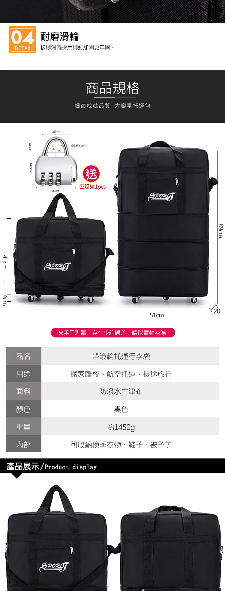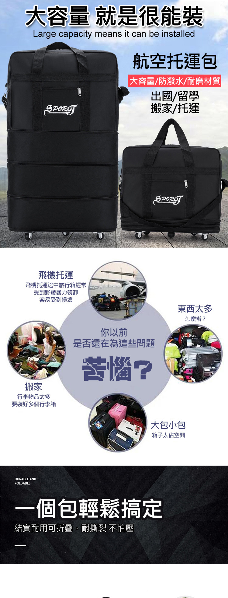 【加厚防潑水面料/送鎖頭】帶滾輪航空托運行李袋 航空託運包 大容量滾輪旅行袋 手提袋 行李包