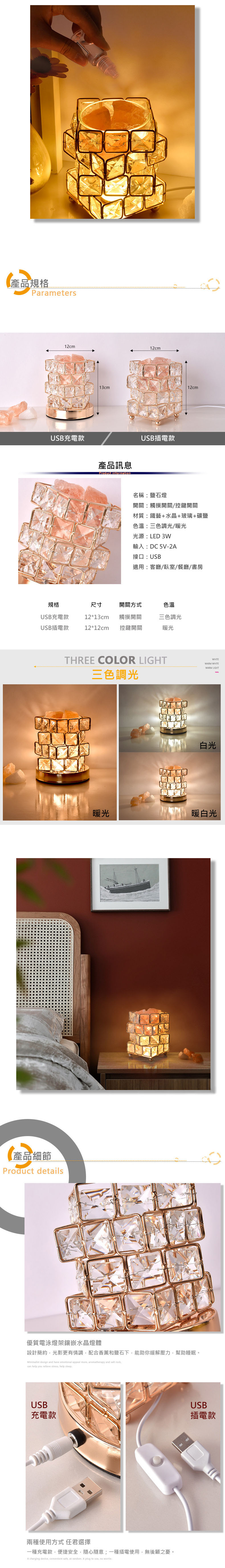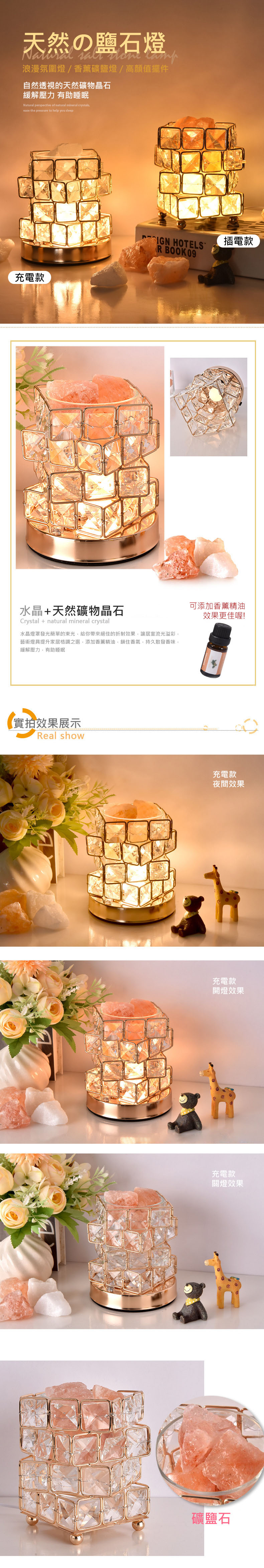 ※建議長時間亮燈,因鹽的物理特性是會吸收空氣中的水分粒子,若鹽燈被關掉,濕氣無法透過熱力蒸發,鹽燈表面就會「潮解」化成鹽水,無法發揮作用。