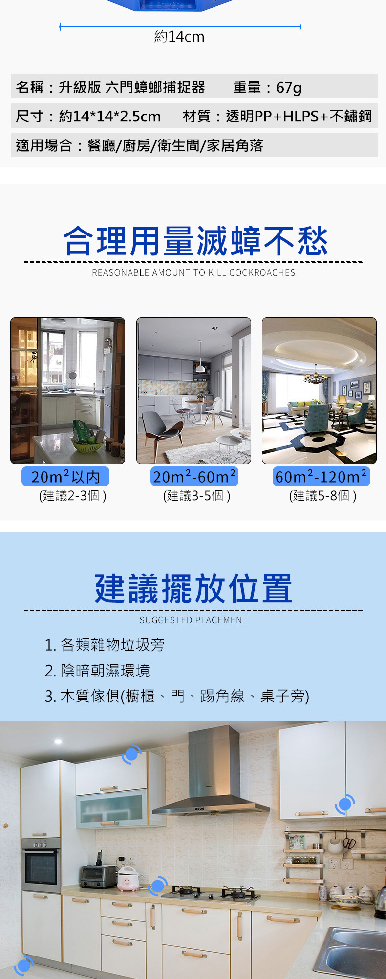 升級版六門360度,多方位誘捕蟑螂 一盒配送三包誘餌 (※誘餌切勿讓孩童自行拿取,以免誤食)