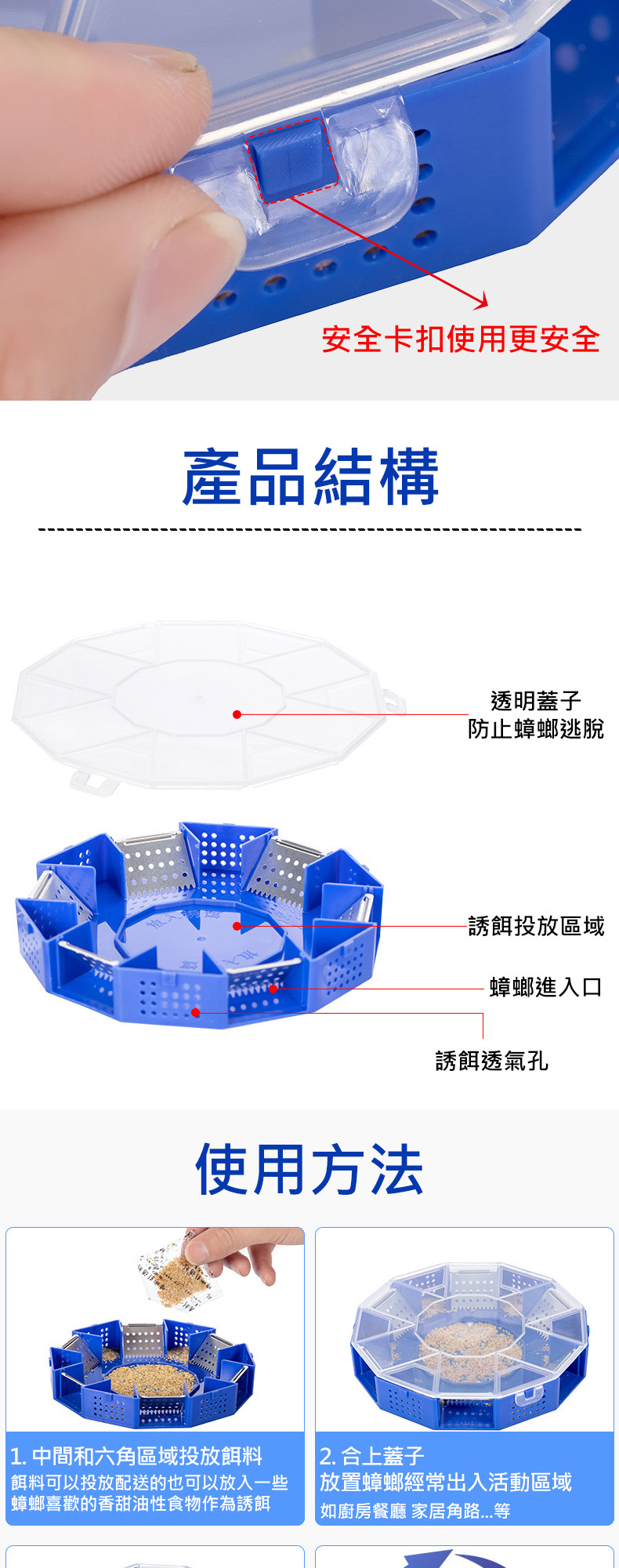 ※誘捕劑不含殺蟲劑,是利用誘引劑的味道吸引蟑螂進來