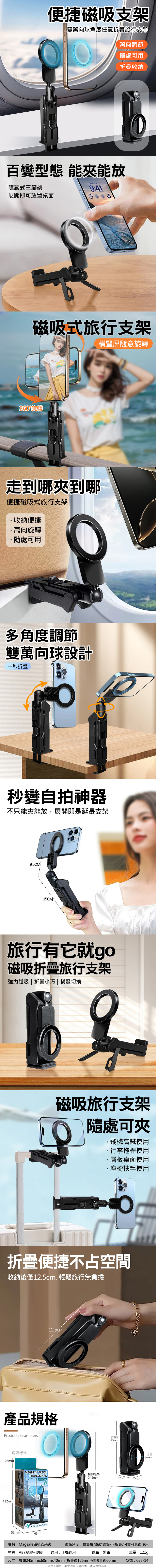 ◆產品尺寸:展開245mmx60mmx40mm(折疊後125mm/磁吸直徑60mm)