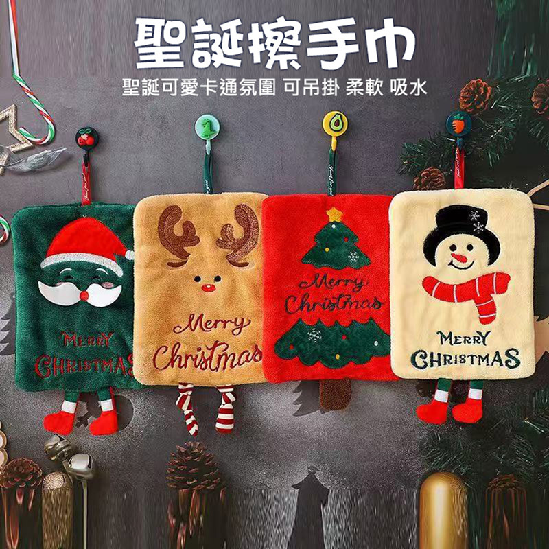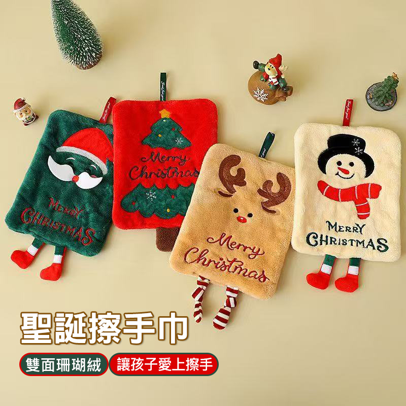 聖誕擦手巾 卡通擦手布 聖誕毛巾 聖誕節交換禮物 吸水抹布 掛式擦手巾 珊瑚絨方巾
