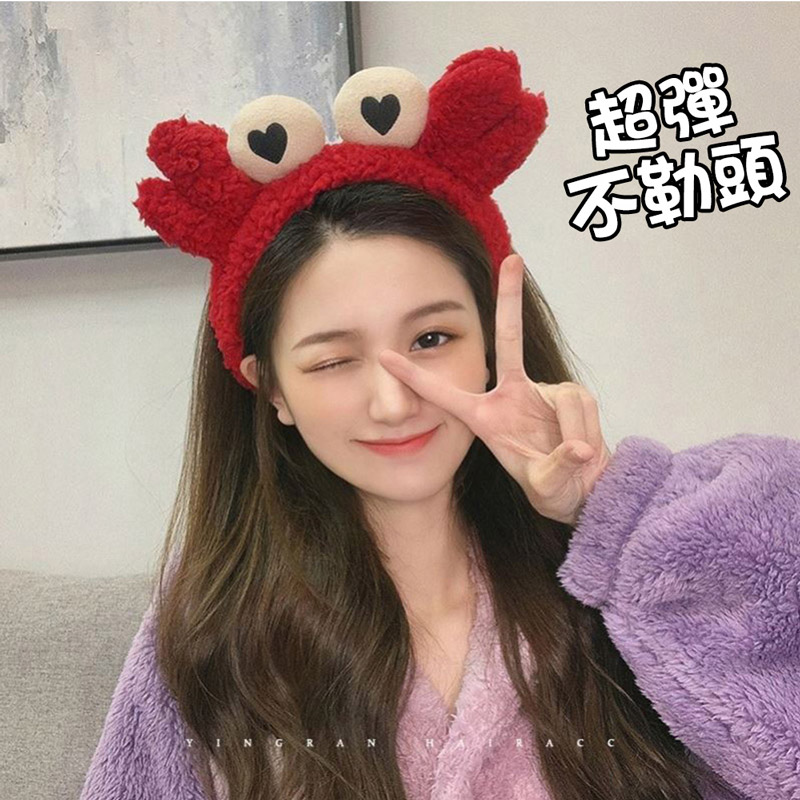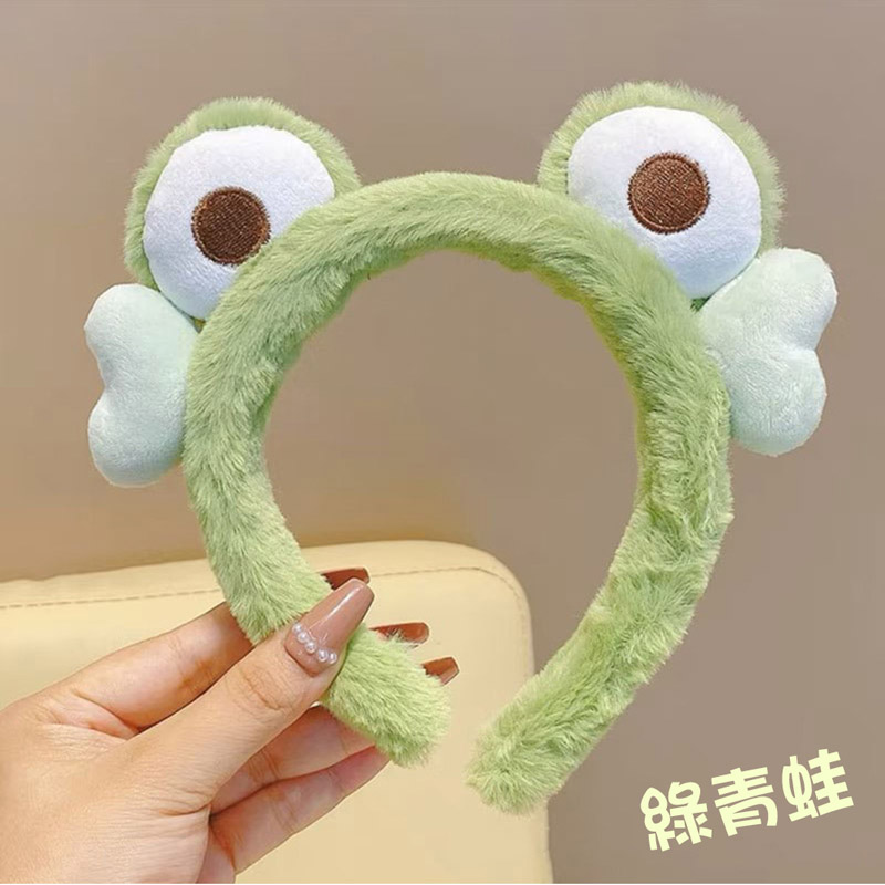 敷面膜髮箍 綠色青蛙眼睛/卡通螃蟹/毛絨熊耳朵 大眼睛青蛙髮箍