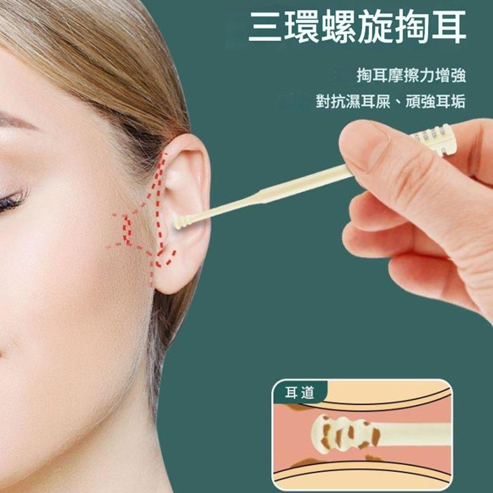 三環螺旋設計對坑頑固耳垢 掏耳摩擦力增強對抗濕耳屎、頑強耳垢