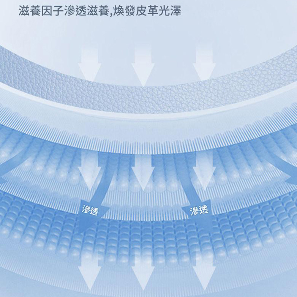 揮發後形成一層保護膜,延緩老化 內含滋養上光成分有效提升皮革光澤與柔軟度