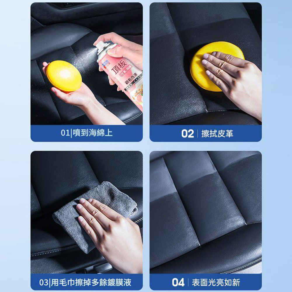 2、將內飾鍍膜噴在海綿上均勻塗擦表面 吸收後用毛巾擦乾淨