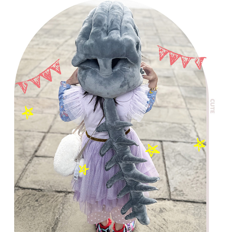 恐龍骨架頭套 中華恐龍骨架 毛絨頭套 公仔娃娃 穿戴空骨架 毛絨帽子