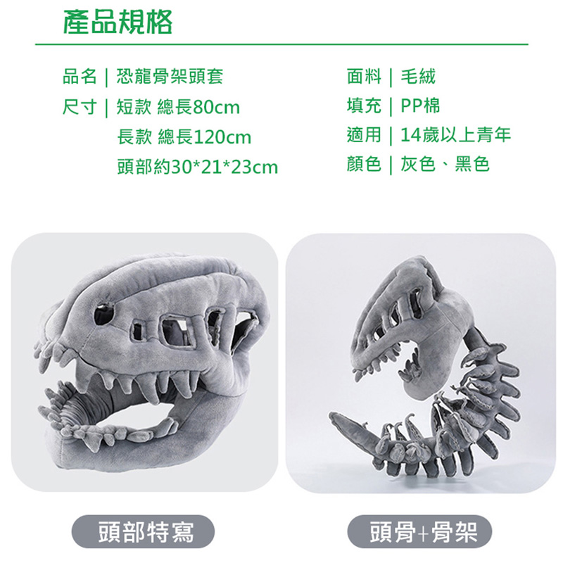 品名:恐龍骨架頭套(頭骨+骨架)