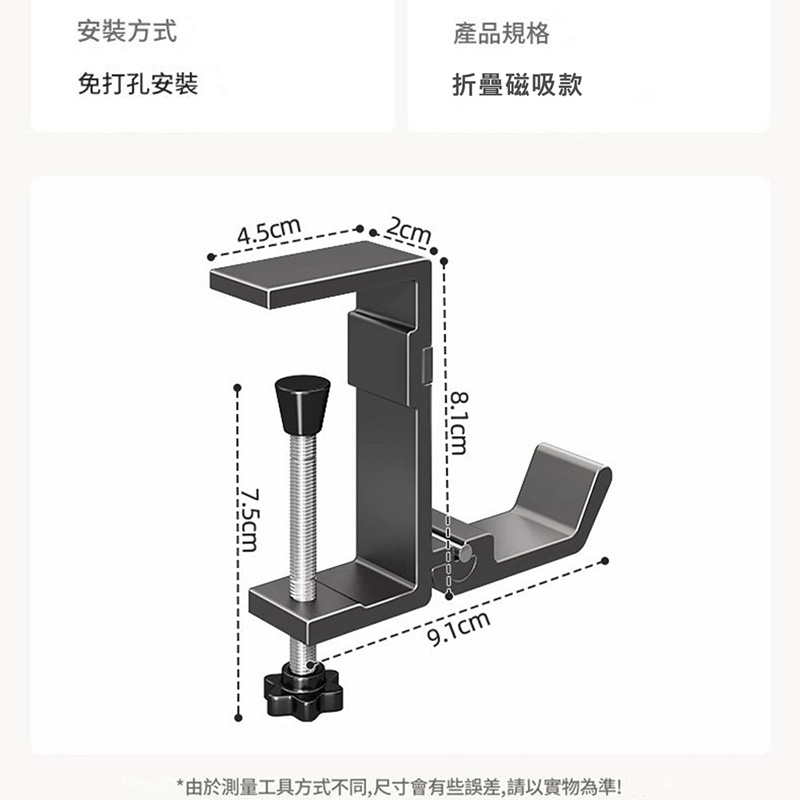 桌板厚度(折疊磁吸勾)1.4-5.8cm適用 / (雙勾款)1.4-3.1cm適用