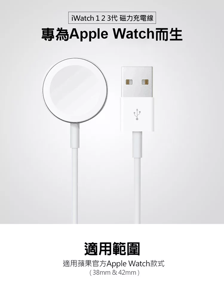 ▲Apple Watch專用磁力充電線,適用Apple Watch 1 / 2 / 3 充電模組