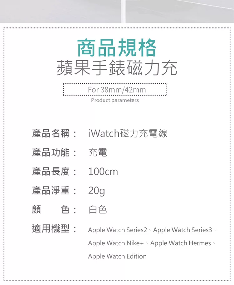 注意事項:僅供Apple watch使用,商品不可摔落,不可掉落水中,不能靠近高溫,輸入電壓不能超過7.5V