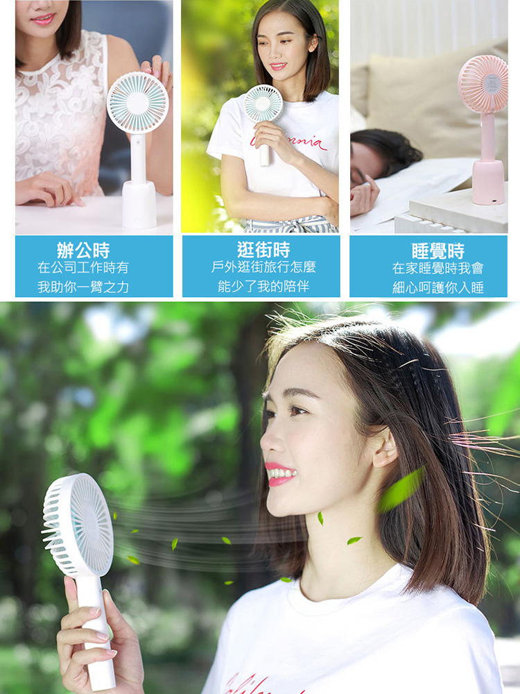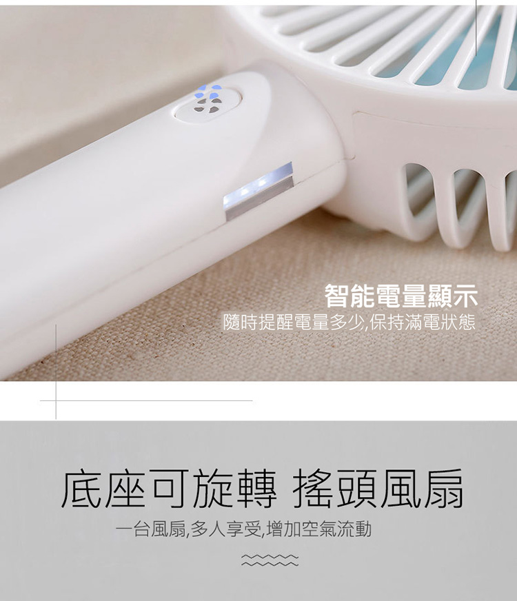 擺頭手持風扇 旋轉底座 手持式充電風扇 三段風速 桌上手持兩用 USB充電 便攜手持風扇 隨身攜帶 (R1)